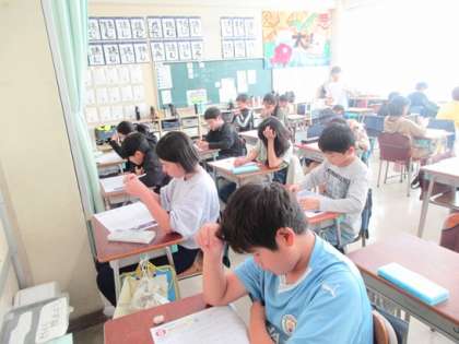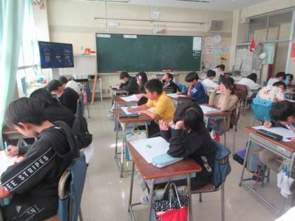 漢字50問テストです。普段の小テストとは違い、問題数が多いのですが、やはり最初の時間が大事ですね。