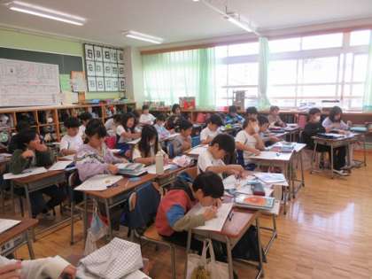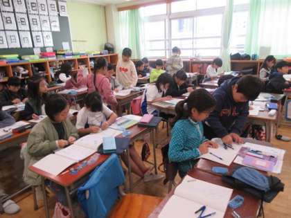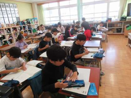 コンパスを使って、円などの図形を作図しています。丁寧な作業が肝要です。