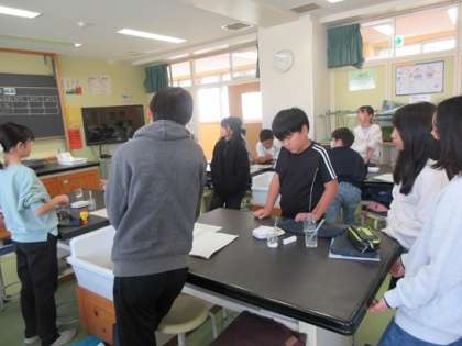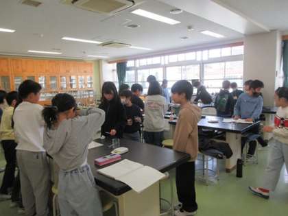 食塩やミョウバンを溶かして水溶液を作り、その様子を観察します。