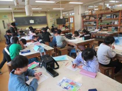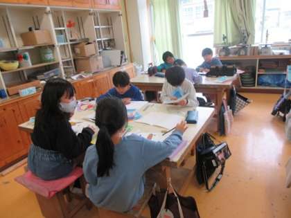 絵の具がにじむことを利用して製作した作品を、画集に整理します。
