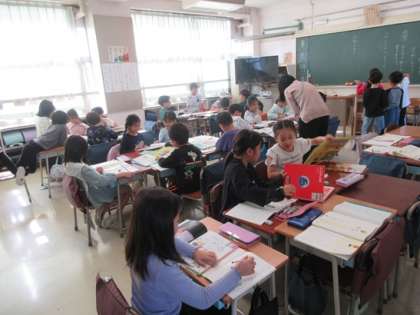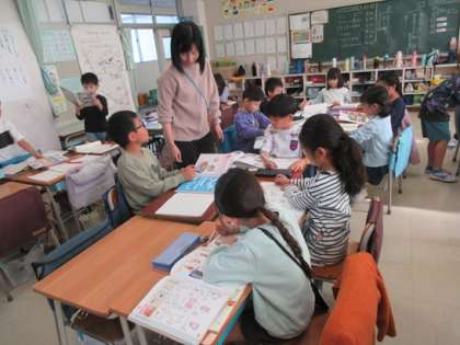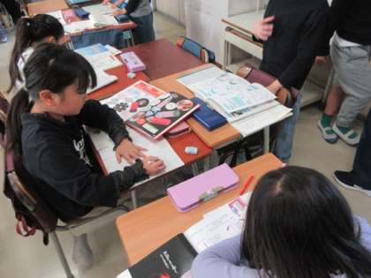 図書を参考に、いろいろなおもちゃの中から自分で選び、作り方の説明書作りです。