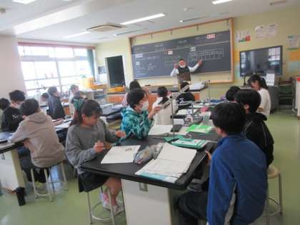 手この実験器を使い、重りの重さと長さ、傾きの関係を確かめています。