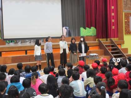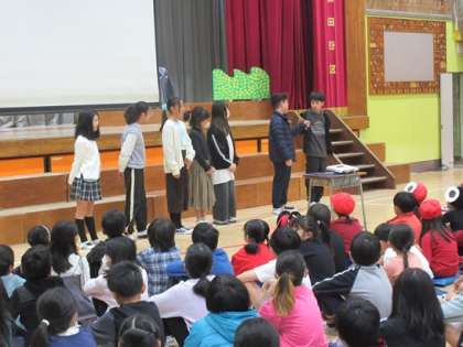 今日の児童集会は、各学年からの演目紹介集会でした。