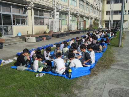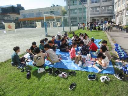 今日は2年生が、芝生でお弁当の時間を過ごしました。外で食べると気分がよく、一味美味しくなります。