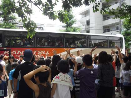楽しかった時間もあっという間です。別れを惜しみながら川場小の友だちを見送りました。次は冬に千歳台小のみんなで川場スキー交流へ行きます。また会える日まで…。