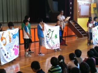 今日は、始業式。楽しかった夏休みの思い出を胸に、元気な顔が並びました。アド多摩で、いかだ下りを頑張った友達も、表彰しました。