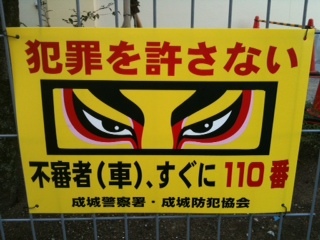 さて、登校指導をした月曜日、東門に上の看板を付けました。「ためらわず、すぐに110番してください」と、警察からも、指導されています。
