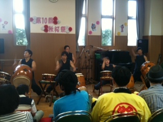 千歳福祉園で、第10回秋桜祭が行われました。オープニングは、都立深沢高校 太鼓部による「飛龍三段返し」の素晴らしい演奏でした。