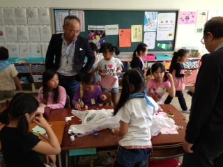 2年生がお店、ゲーム屋さんを開いて、1年生を招待しました。今日は、学校運営委員の皆様にも、見て頂きました。「副校長先生!私がお店やっている時、見に来てくれなかったでしょう!」ごめんなさいね。