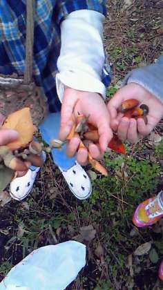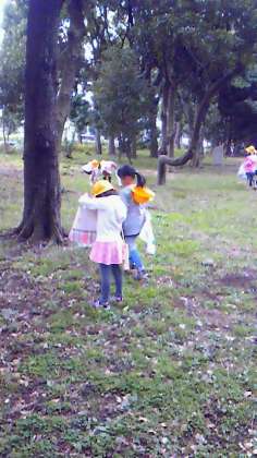 秋めいた涼しい気候でしたが…子どもたちは元気いっぱい秋のどんぐりや葉っぱなどを見つけていました。