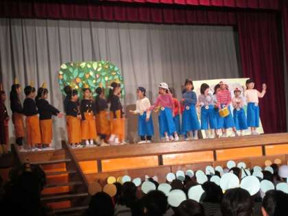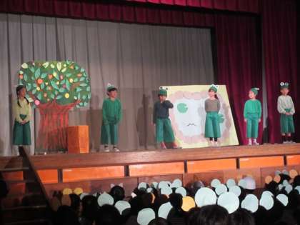 昨日のリハーサルで緊張も少しとけたようです。大きな声で、元気いっぱいのセリフで楽しませてくれました。明日はもっと上手になれそうです。