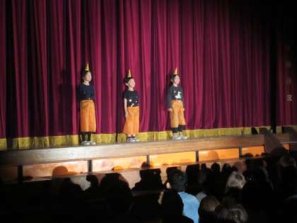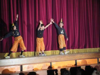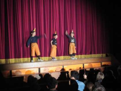 今日は1年生の初めの言葉から開幕です。かみなりちゃんの衣装で、元気いっぱいのあいさつでした。