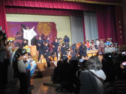 体育館中に響き渡る歌声とセリフが、3年生の「ガンバ」です。音声を掲載できないのが残念です。