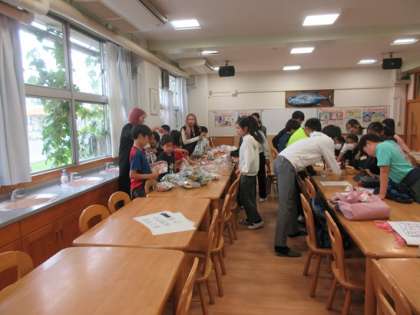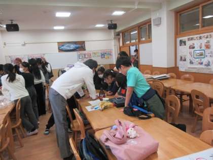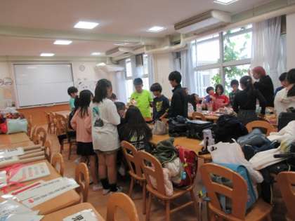 めばえまつりで、子どもの店を出す子ども達が集まり、出店の準備をしました。