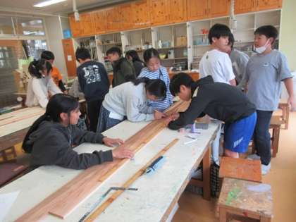 椅子の製作が始まりました。性格に切っていくことが、組み立てには大事なポイントです。