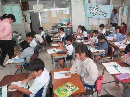 「たぬきの糸車」のお話の中から、好きな場面を選び、絵を描こうと思います。