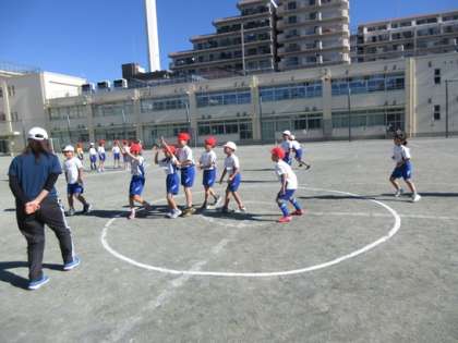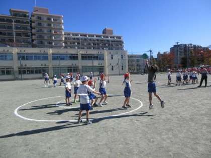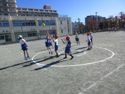 円の真ん中にいる、味方のゴールマンにボールをパスできると得点が入ります。