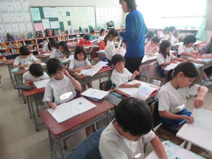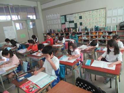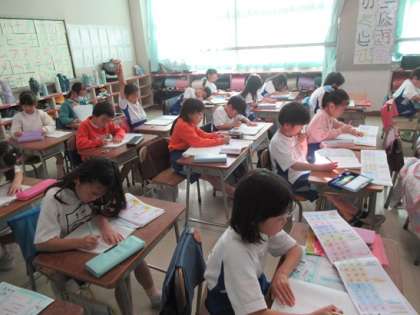 朝の国語の時間はドリルから始まっていました。一文字一文字丁寧に書きます。