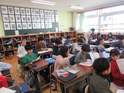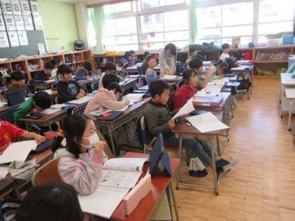 重さをはかる、はかりについて学習をしています。メモリの読み方や単位を確かめています。