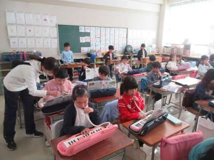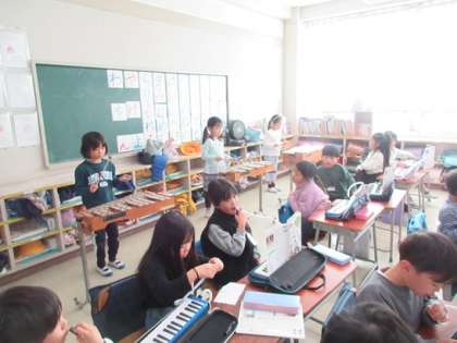 木琴とピアニカで演奏です。木琴は交代しながら演奏です。