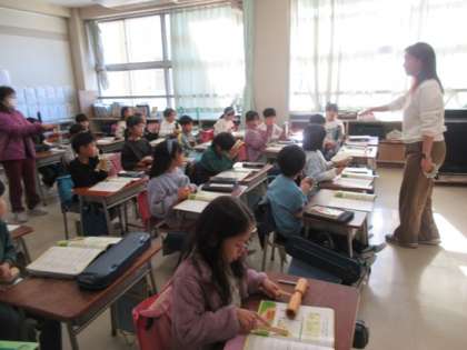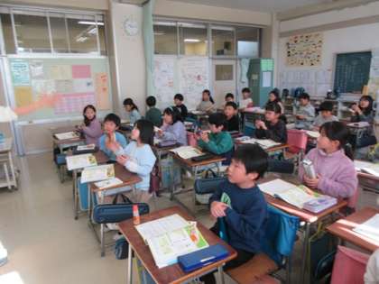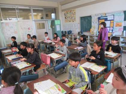 伴奏に合わせて合掌します。さらに合わせて、打楽器での合奏もやります。