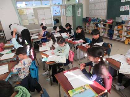 1年2組の国語の時間です。