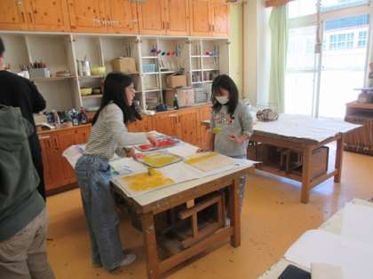 版画の作品がだいぶ掘り進んでいます。様々な色で刷っているので、どんな作品ができるのかが、まだ想像がつきません。