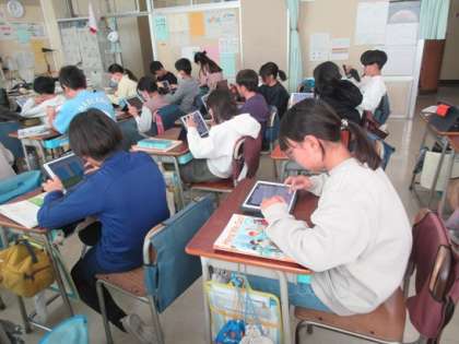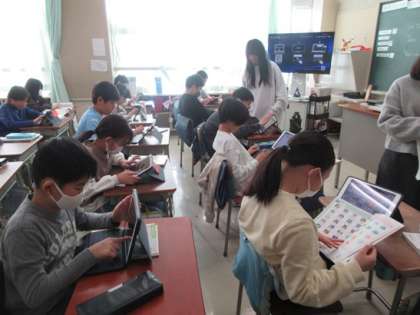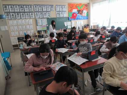 施設や建物を表す言葉を学習しました。学んだ言葉を生かして、マイタウンを考えます。