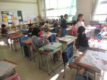 2年1組の図工の時間です。