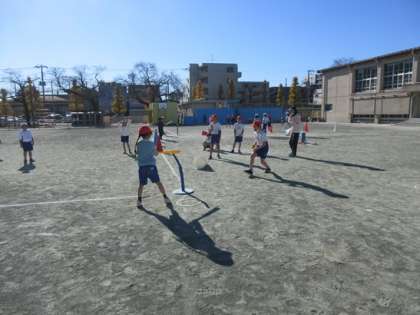 ベースボール型のゲーム学習です。バットを使ってボールをヒットするのが難しいですね。