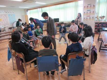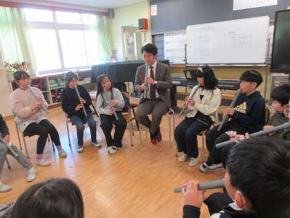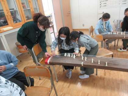 今日はゲストティーチャーを招き、邦楽の学習をしました。琴は実物を、尺八は練習用の楽器をそれぞれ体験しました。