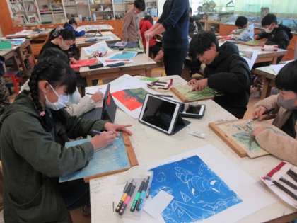 版木をさらに掘り進めています。どんな作品になるのでしょうか。楽しみですね。