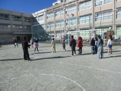 インフルエンザのためいん、先週の木曜日から延期した、たて割り班遊びを実施しました。外で遊んだ班は天気も良く、思ったよりも温かでした。