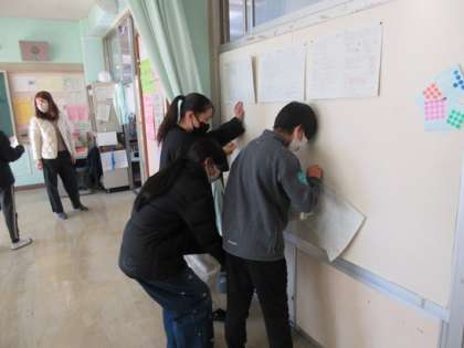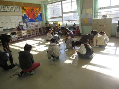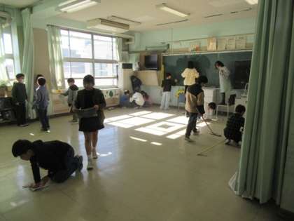 どこのクラスでも熱心にきれいにしているのが床面です。1年分の汚れを落としています。掲示物もきれいにはがし、新たな気分で新年を迎えたいですね。