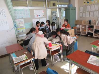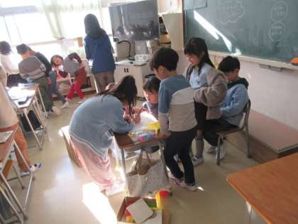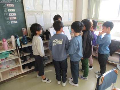 1年生を招待する冬まつりの準備も大詰めです。お店を進める手順を確かめています。