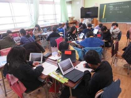 60年くらい前に撮影された千歳台付近の写真を見て、現在との違いを確かめています。