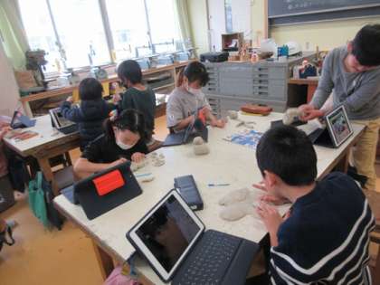 鉛筆などの文房具や粘土を少しずつ動かしながら撮影します。続けて再生するとアニメーションのようになります。
