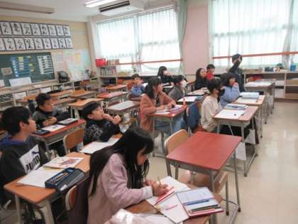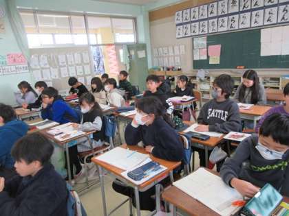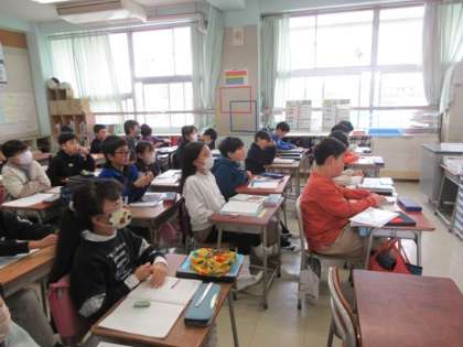 4年生の少人数算数の時間です1平方cmの正方形のタイルを元に、長方形や正方形の面積の出し方を考えています。