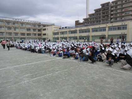 今日の避難訓練は、放送機を使うことができない想定で実施しました。