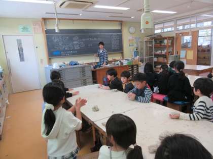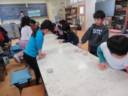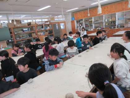 今日は図工室で学習します。大きな作業机や図工の先生など、いつもと違う雰囲気にドキドキです。