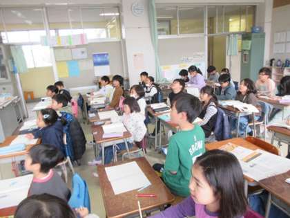 文頭が「あいうえお」になる作文です。意味が通じるように言葉を考えています。