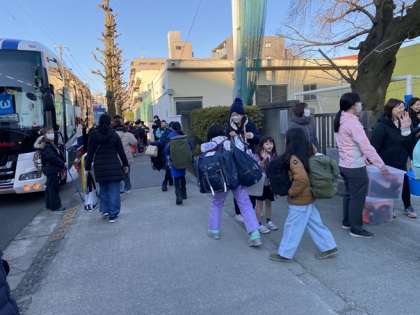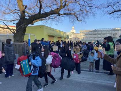 8:00に概ね予定通りに学校を出発しました。保護者の皆様、先生方、6年生などたくさんのお見送りをしていただきました。