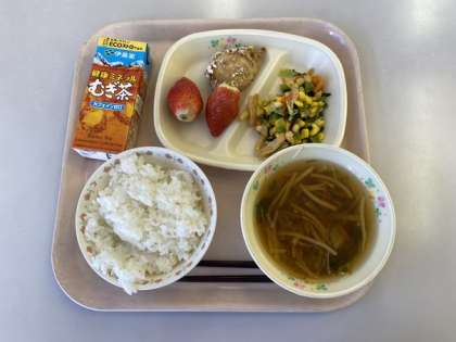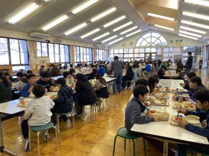 今日の昼食は川場小の給食をいただきました。ゆきほたかに会う献立を川場小の5年生が考えてくれました。