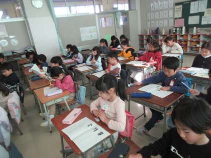 1年1組の道徳の時間です。