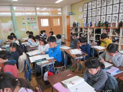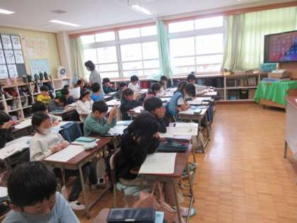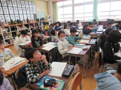 漢字の特徴である、同じ漢字の音読みと訓読みを使って、かるたづくりをするようです。