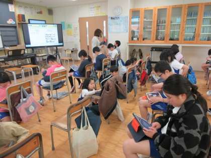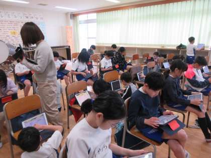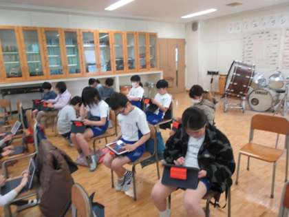 鑑賞曲を聴き、タブレットを利用して、感想を書いていました。