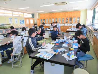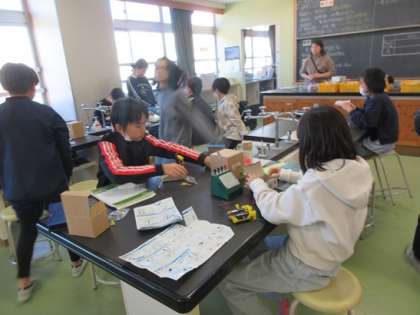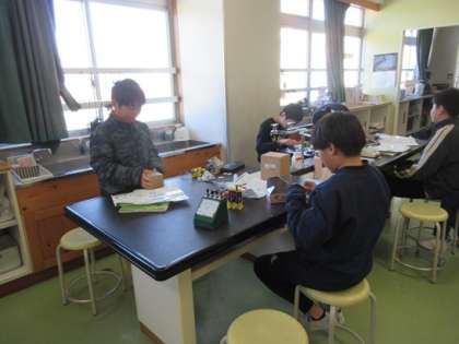 電磁石の実験キットを使い、電流の磁力の関係などについて確かめています。