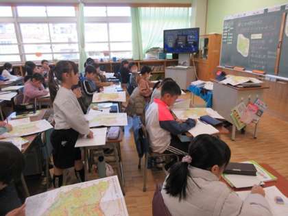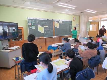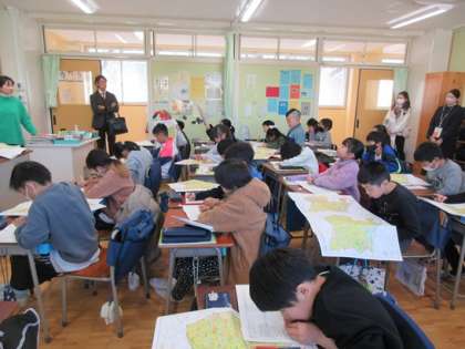 大正のころと戦争直後ぐらいのころの、世田谷の土地利用を表した地図を見ながら、違いや変化を見つけています。