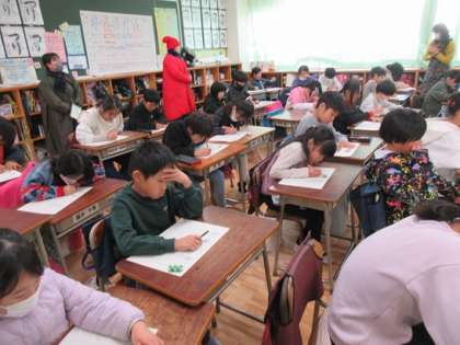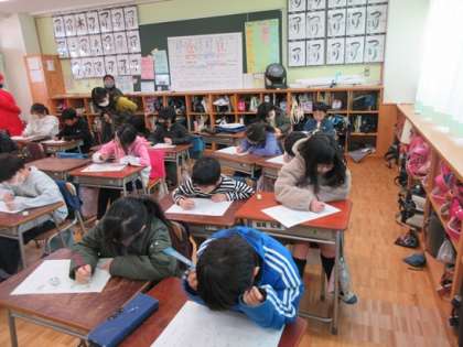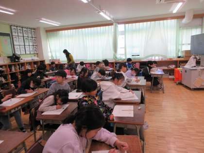 プリントにはイラストが描かれています。このイラストもとにお話づくりをしています。なかなか難しそうですね。