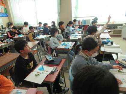 折り紙で八角形を切り出し、図形で学習する要素も確認して、その特徴を考えるようです、